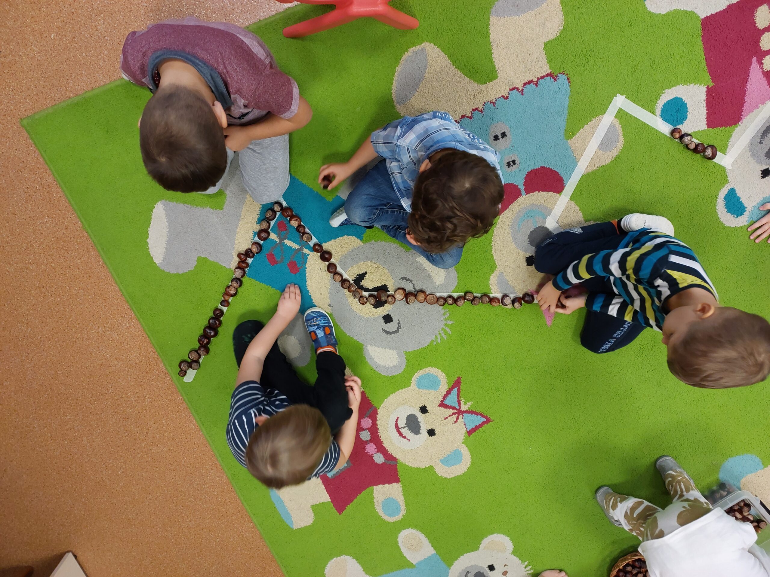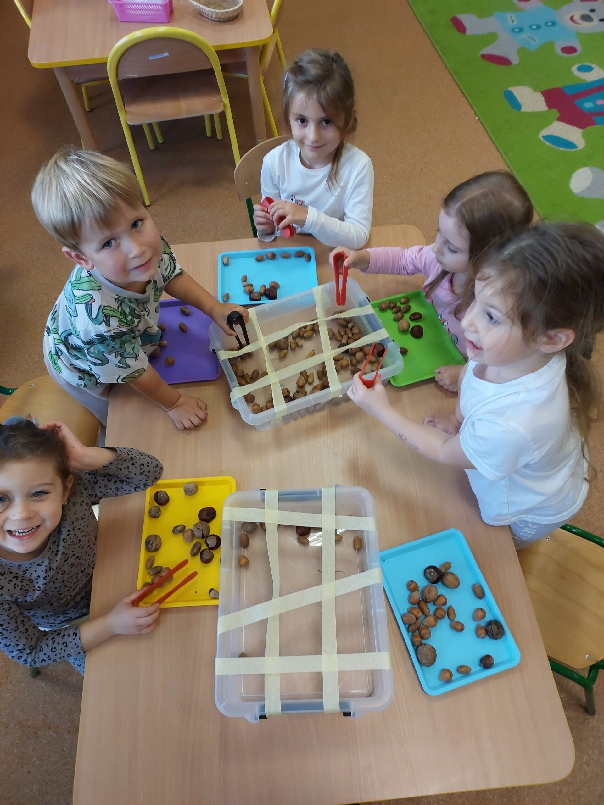 Kiedy pogoda sprzyja spacerom, zbieramy dary jesieni, a kiedy za oknem plucha wykorzystujemy je do zabawy i rozwijania nowych umiejętności.