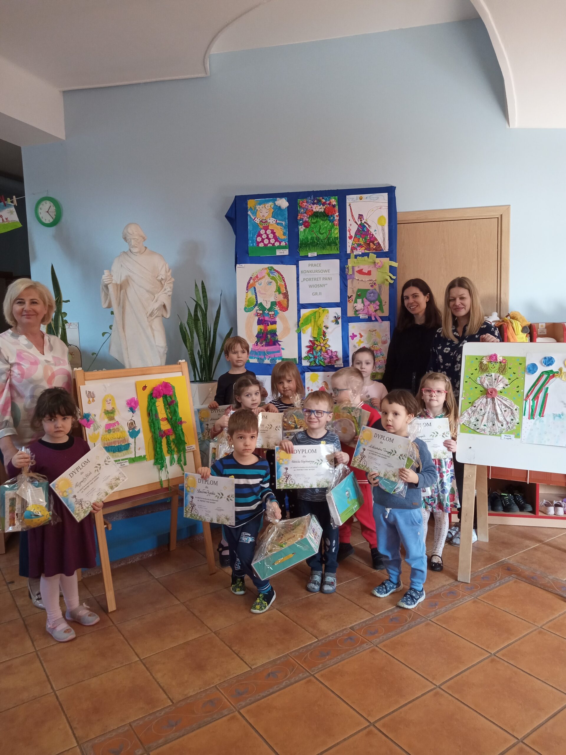Marzec to czas kiedy czekamy na pierwszy dzień wiosny, dlatego w naszej grupie został zorganizowany konkurs plastyczny „Portret Pani Wiosny”. Prawie wszystkie dzieci z grupy wzięły w nim udział. Prace były bardzo kreatywne i pomysłowe. Gratulujemy wszystkim uczestnikom.